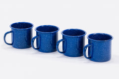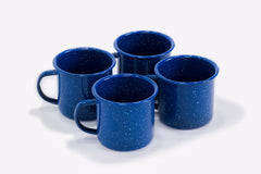 Classic blue with speckled enamel coated steel sold in sets of 1 or 4 that is the perfect addition for your camping cookware